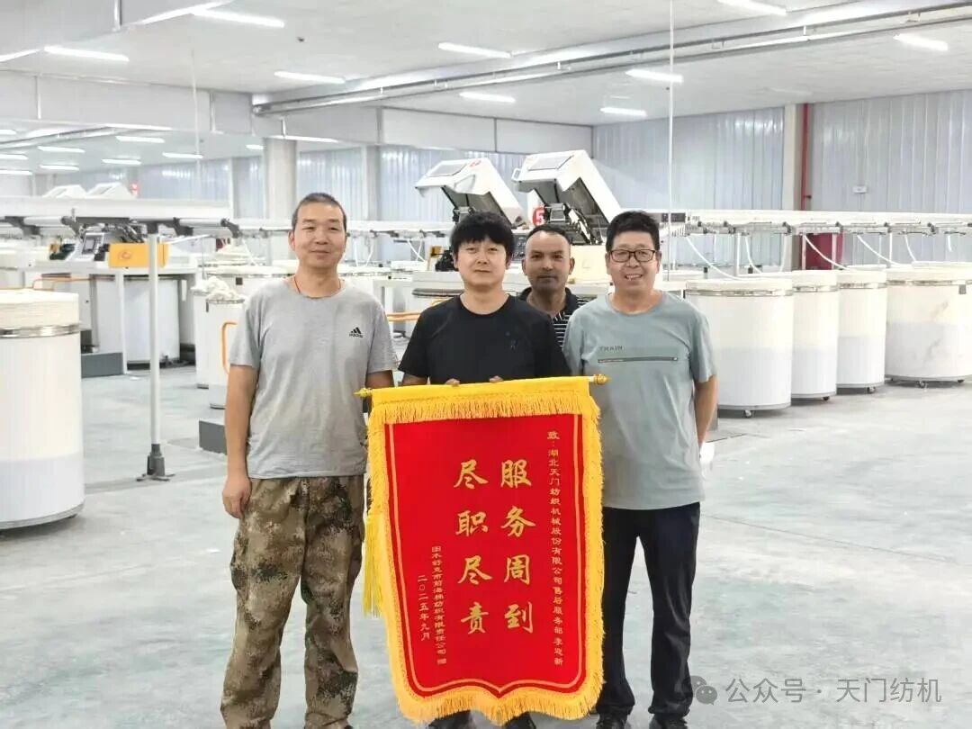 “服務周到,盡職盡責”,這是天門紡機新疆客戶圖木舒克市前海棉紡織有限責任公司送給90后售后服務工程師李迎新的錦旗贈言。短短八個字,既是肯定,又是褒揚。
